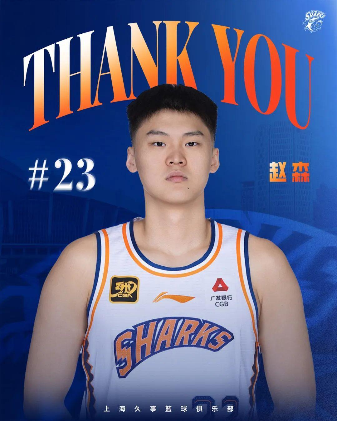 在我们欢迎张镇麟加入球队的同时,也要向我鲨两名球员赵森、孙福恒挥手告别。赵森出生于2004年10月28日,身高201厘米,体重101公斤,司职前锋。作为我鲨青训体系培养出来的球员,他曾多次帮助球队获得青年赛事的冠军。2024年休赛期,赵森从我鲨青年队上调至一队,开启了他的CBA职业生涯。