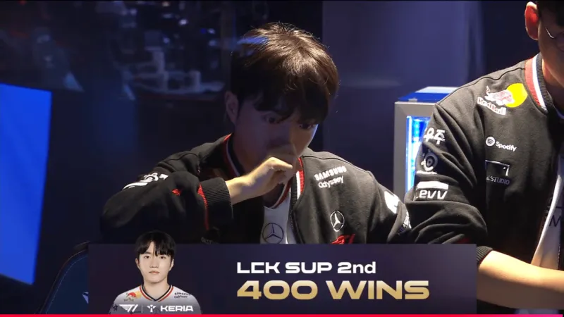 虎扑09月10日讯 在刚刚结束的T1对战DK的第二局比赛里,T1战胜DK扳平比分,Keria选手达成自己LCK生涯400胜场成就,位列LCK辅助位置历史第二。